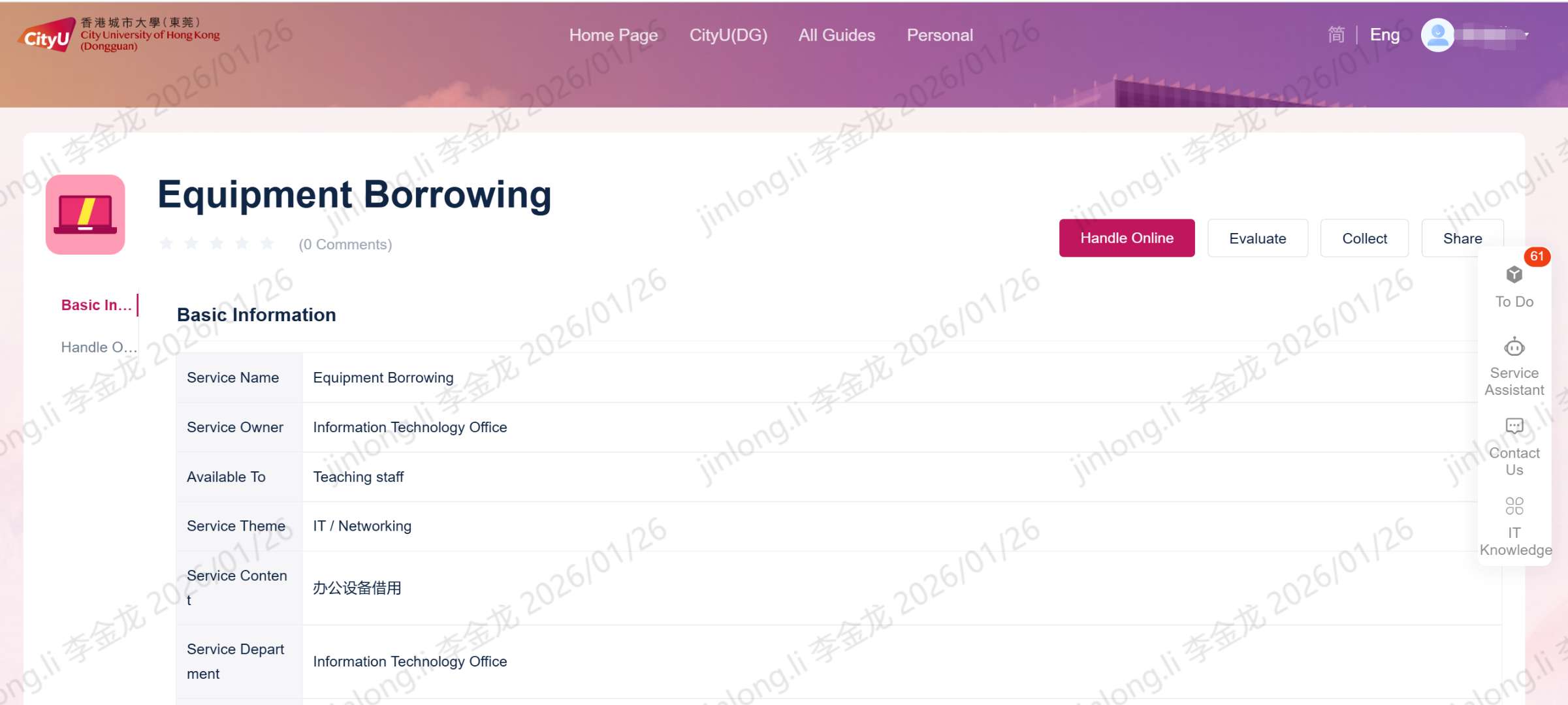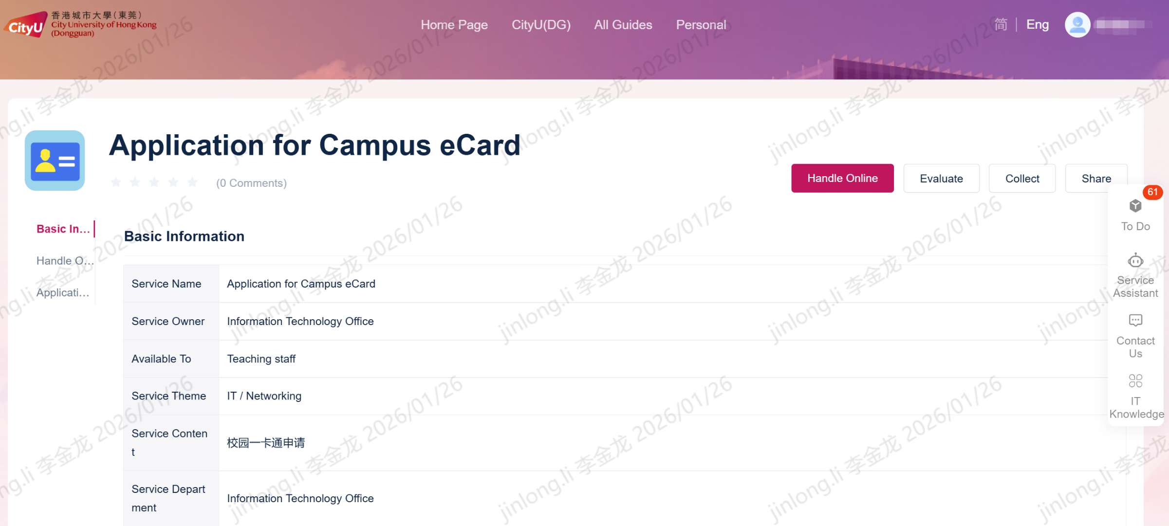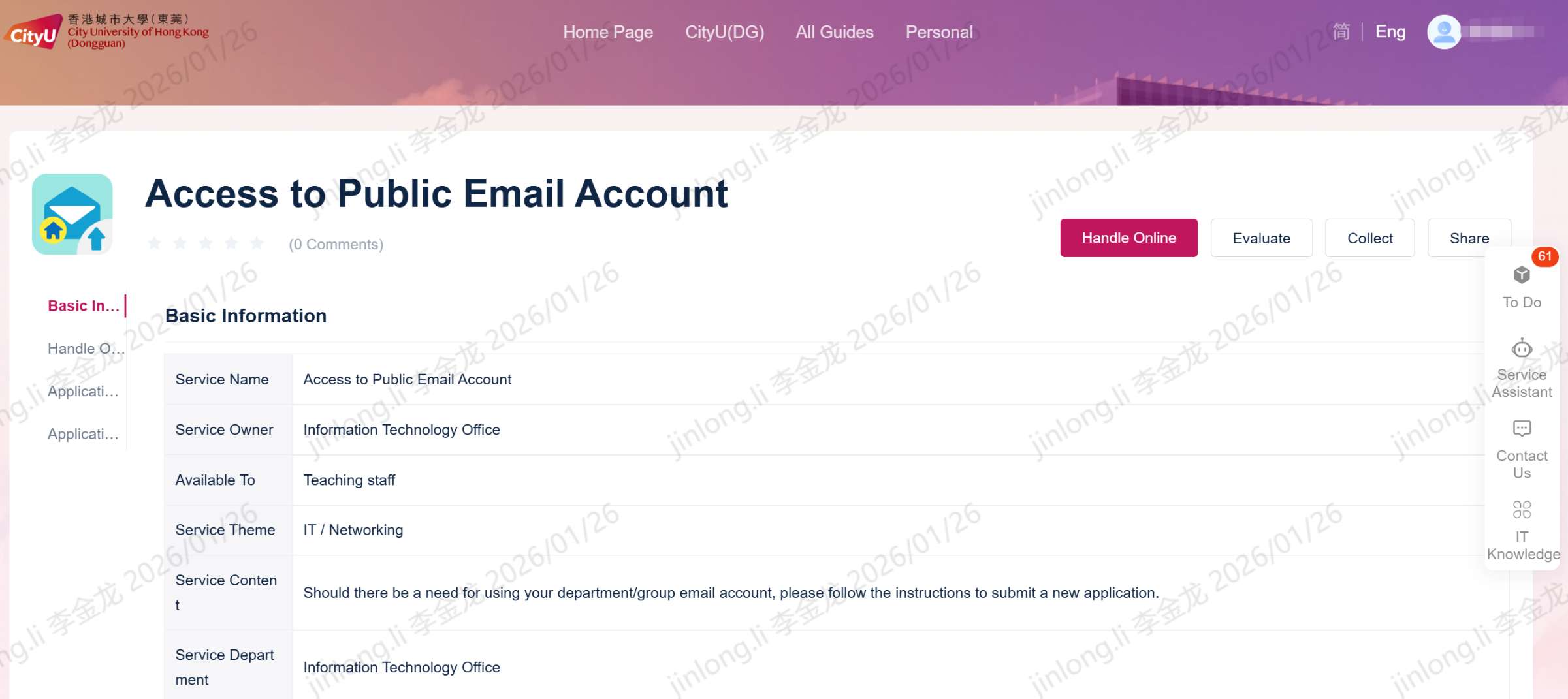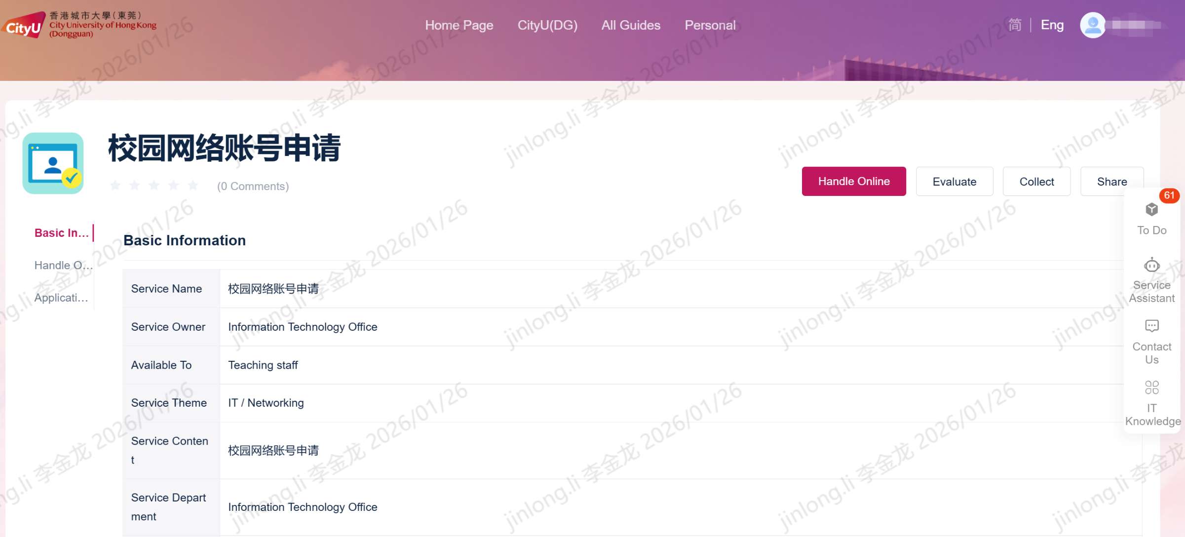 For matters related to campus network account application, please submit your request through the following portal link: